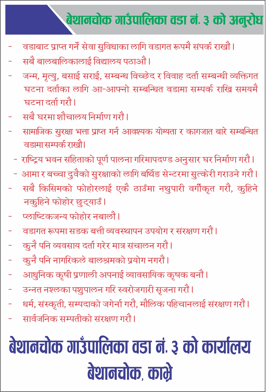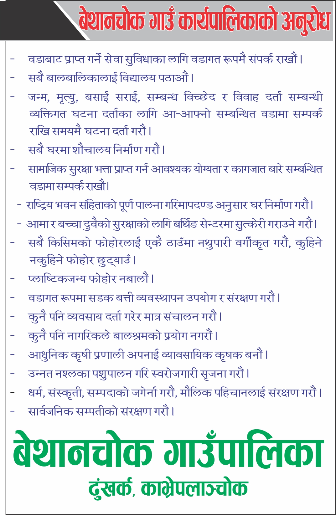 पनौती पनौती नगरपालिकाको अठारौँ नगरसभा आज कुनै विवाद बिना सौहार्दपूर्ण वातावरणमा सम्पन्न... विस्तृतमा